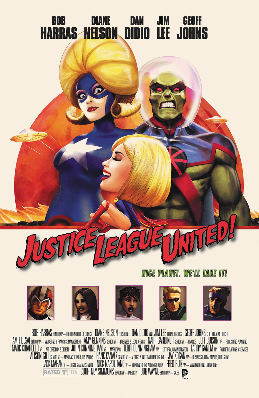 JUSTICE LEAGUE UNITED #10 inspired by MARS ATTACKS, with cover art by Marco D'Alphonso