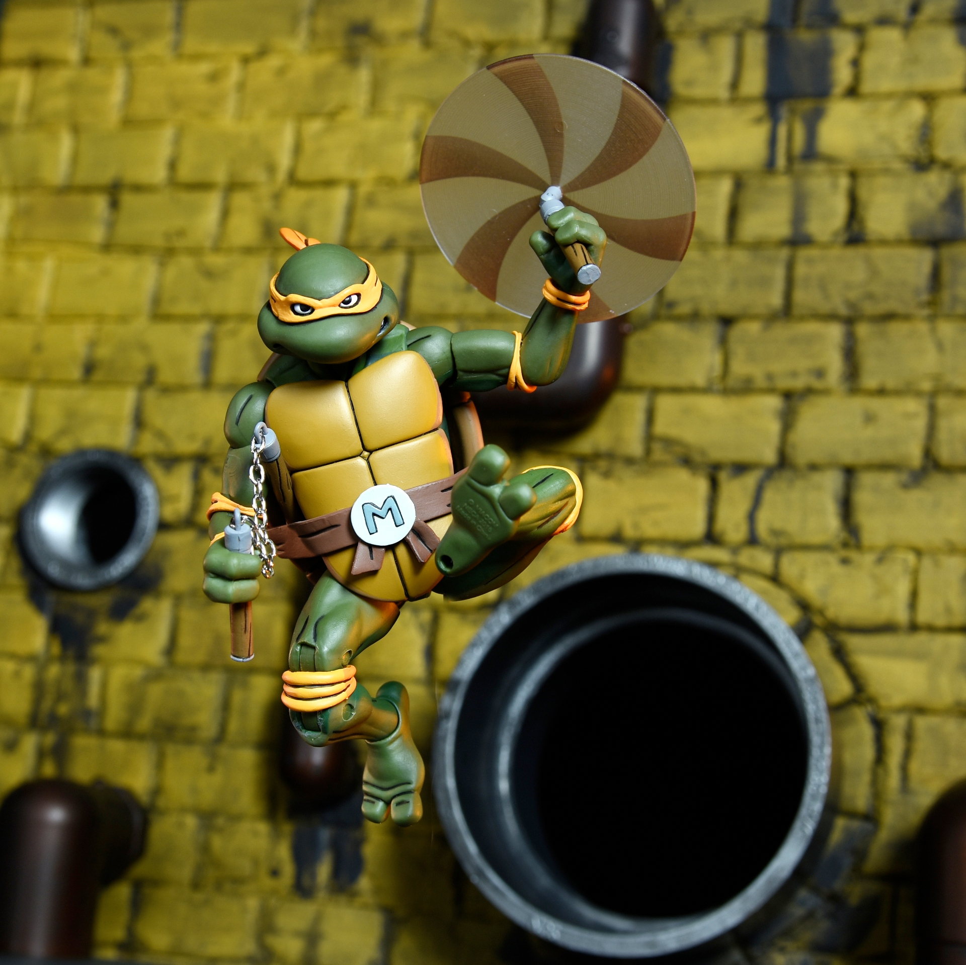 This is genuinely one of the coolest action figure box sets I've ever seen. Not only does the paint job do an amazing job of creating 3D versions of the animated series, but the accessories have everything you could ever want for these characters. Michelangelo has a plastic piece that makes it look like he's spinning one of his nunchuks, all four of the turtles have their own turtle communicator (two open and two closed) and, of course, there's a whole pizza with a slice taken out of it.
