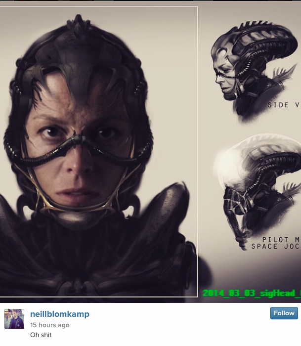 Blomkamp doesn't say what the Alien project was, so it's possible it wasn't a movie but a video game or comic book or something else entirely. (He did spend time working with Sigourney Weaver, on Chappie, so perhaps they had conversations that led to these designs.)