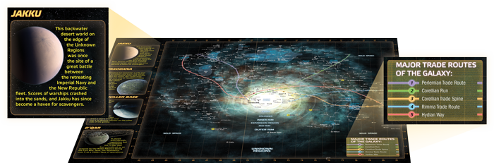 Second, The Force Awakens Beginner Game allows you to carry your adventures even beyond the scope of Discovery on Jakku. A slim rulebook of forty-eight pages summarizes enough of the core Star Wars roleplaying rules to allow you and your friends to take your characters into new adventures of your own design. You'll also find a beautiful starmap to help you do just that.