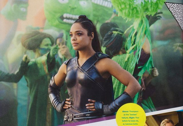 Secondly, check out that photo of Tessa Thompson as Valkyrie. What's going on behind her? With all the green streamers and homemade heads that look like a familiar green guy we all know, this appears to be some kind of parade for the gladiator champion known as The Incredible Hulk. He's clearly quite a big deal on Sakaar, and I can't imagine the planet is going to be too happy when Bruce Banner and Thor decide to make a getaway from the planet.