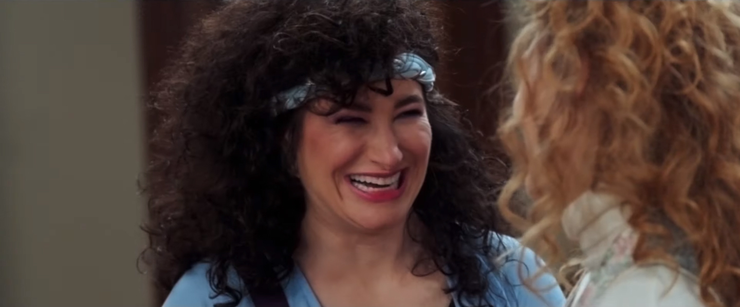 Though we've assumed Kathryn Hahn is perhaps a villain in WandaVision, these two shots would seem to indicate that she might be trapped here like everyone else and is being manipulated to be part of this mental projection. Agnes says, "Are you here to help us?" as we cut from a worried look to a playful laugh.
