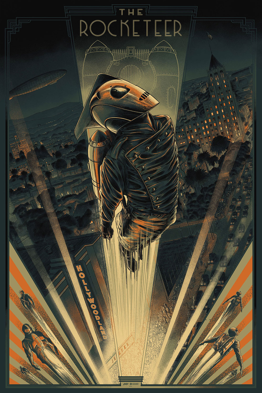 I really love the art deco look in The Rocketeer, and this poster does an excellent job of blending that classic Hollywood feel with the futuristic jet pack-clad hero. I especially appreciate the little details in the background: the zeppelin and the blueprints floating behind Cliff Secord as he takes to the skies.