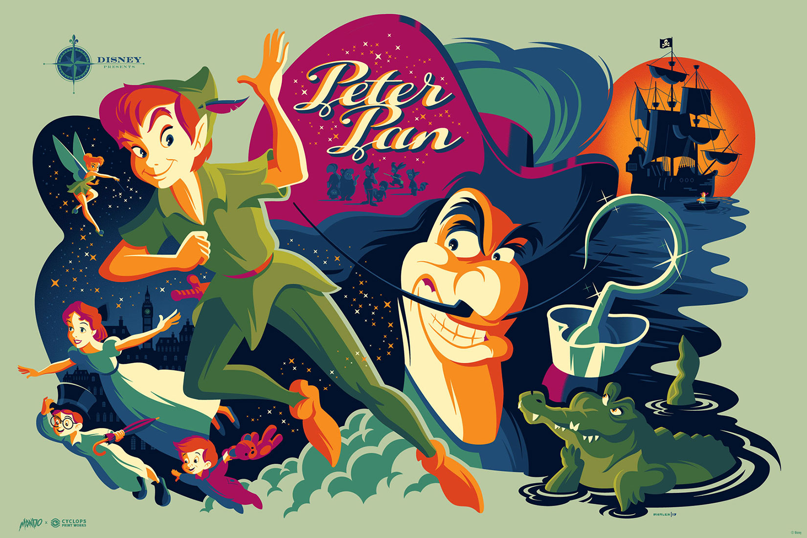 Today is the opening day of Never Grow Up: A Disney Art Show from Mondo and Cyclops Print Works at the Mondo Gallery in Austin, Texas. We've featured a number of pieces from the show on the site already, but now that all of its artwork has been unveiled, I thought it'd be fun to list some of the pieces from the show that stood out to me. So dust off your identity disks, grab your magic lamps, and count down my ten personal favorite pieces of Mondo Disney art below.