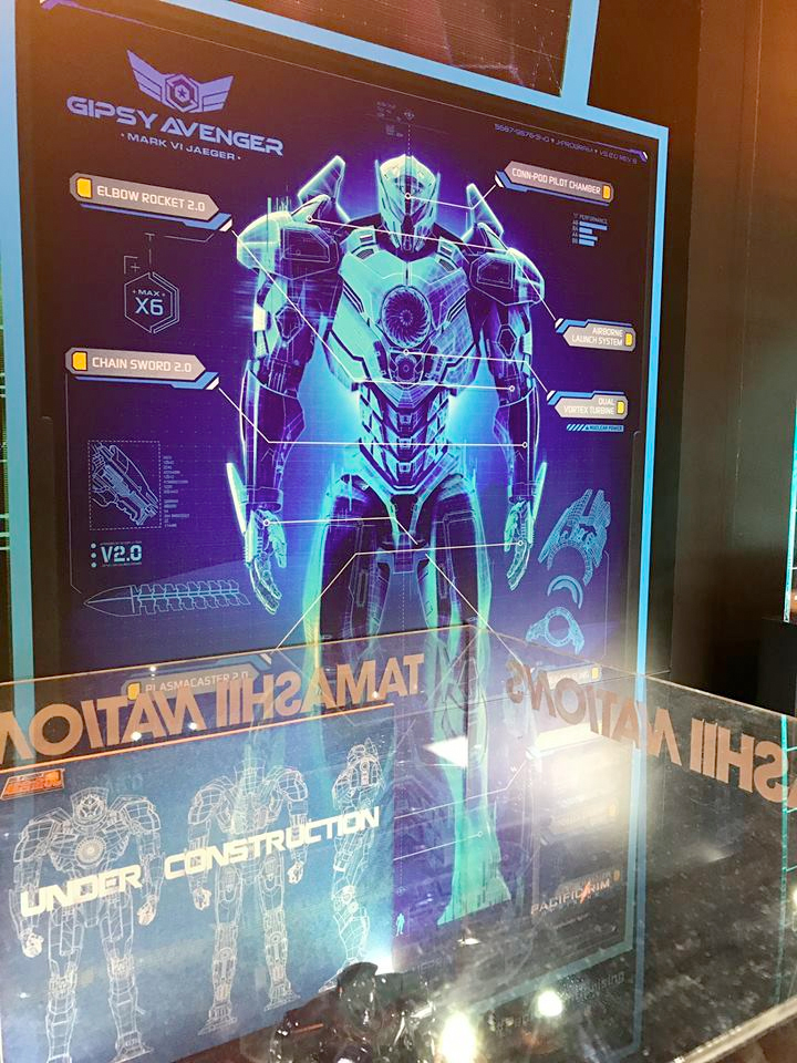 Collectible toy company Tamashii Nations will be making some products tied in with Pacific Rim: Uprising, and at an event in New York City this weekend, they revealed the first official look at their toy version of the new jaeger known as Gipsy Avenger. There are even some details on the upgraded weapons that the new jaeger has hidden in its body.