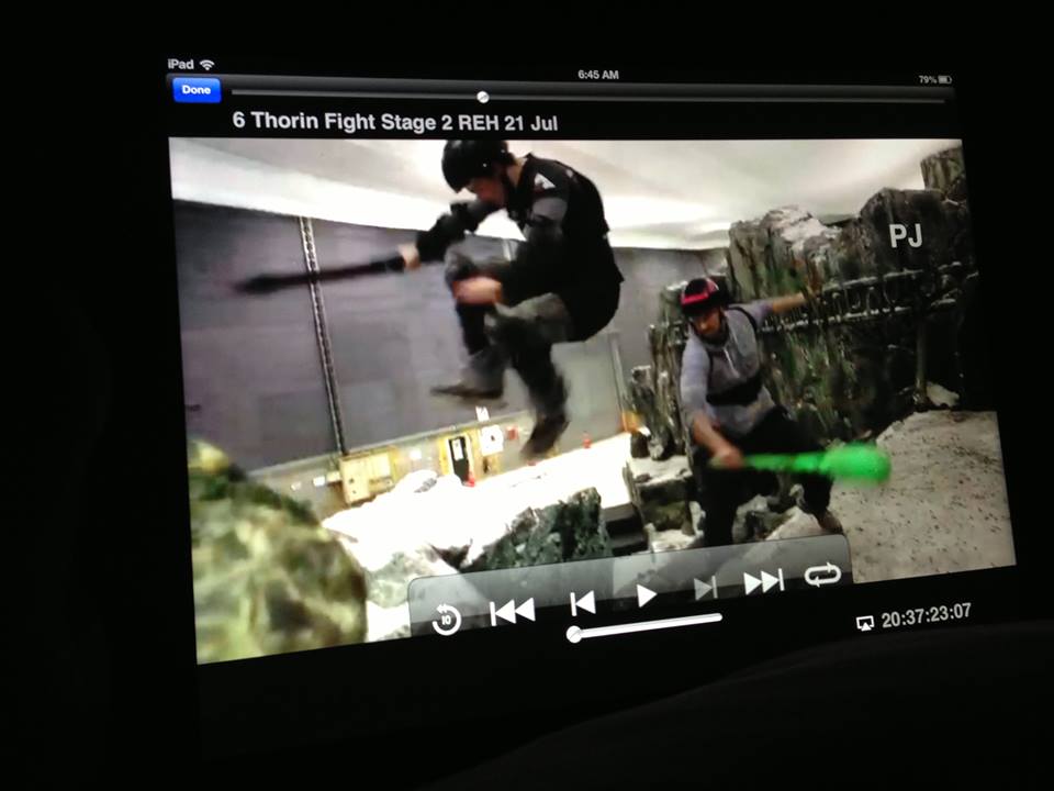 Our last day of shooting.Ever since starting these blogs, there's been something I thought I'd like to try one day (as well as answering the other 19 questions I owe you!) – blogging throughout a shoot day in real time. Try to give you all a feeling for what we deal with on an average day.Today is not exactly "average", given it's our last day of shooting, but if I don't do it today, I never will! So here goes ... I'll try to update as much as I can during the day. At least with a quick photo. Text will depend a little on how busy it gets.Right now, it's just gone 6.30am here in Wellington. I'm in bed, about to get up! I didn't get much sleep – too stressed about how we're going to get through everything we need to shoot. I kept running it over in my mind. We're shooting scenes for Film 3 today. Stuff you will see in Dec 2014, so I'm going to try and make this honest, but spoiler free.I've been lying here in pitch darkness, watching fight rehearsals over and over again. Our stunt coordinatior, Glen Boswell, worked with the actors last weekend, designing some climatic battle moments. He filmed them, and I have them on my iPad, in an application we wrote called "WingNut TV". It's a program that allows a huge amount of material to be catalog used and updated each day over the Internet. It contains all our dailies, edited films, previs, music, and much more. I'm looking at the fights, figuring out the angles I'll need to film them today. A huge amount to do, and it needs to get done. Our shoot day starts at 8.30am, and is supposed to finish at 7.30pm. I suspect we'll be working late. Whenever we work a long day, I joke with the crew that I'm just softening them up for when Jim Cameron shows up in Wellington to shoot Avatar 2 and 3. Well ... It's not really a joke.