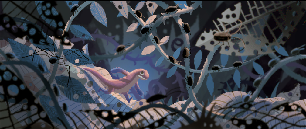 The story continues on the next page, along with a ton of concept art from Pixar's abandoned feature film newt.