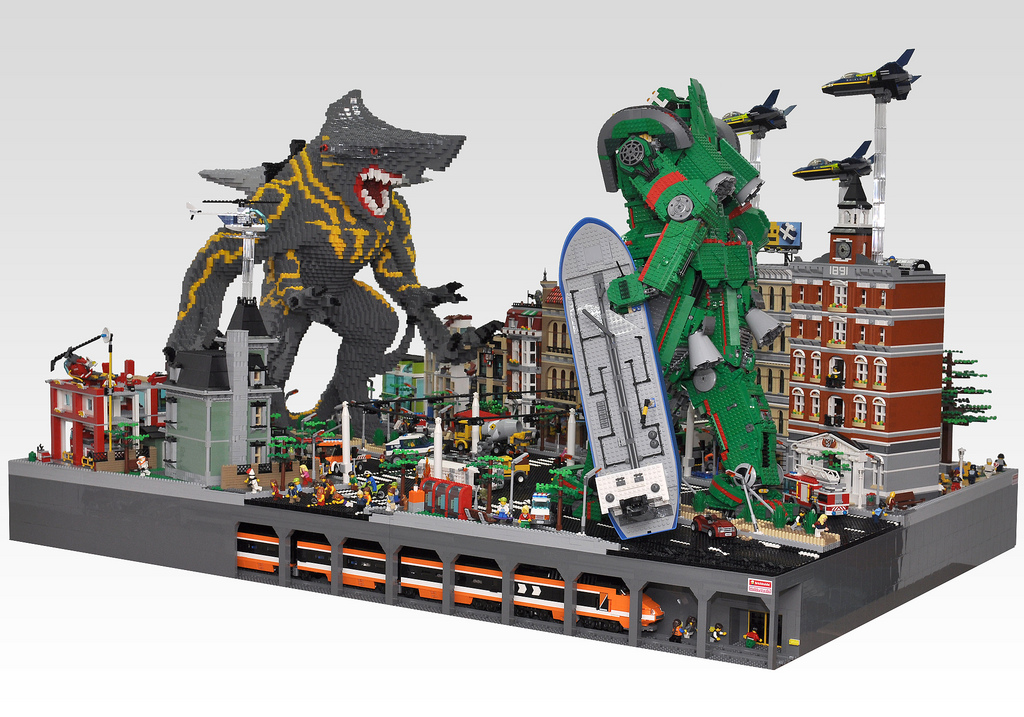 On the list of recent properties you never thought you'd see recreated in Lego, Pacific Rim has to be on the list. Sure it has its devoted followers but the whole essence of the movie is scale and age. The kaiju are organic, dark and reptilian while the jaegers are beat up, rounded-off and well-articulated. None of those are characteristics Lego produces well. But, one talented fan has recreated a Kaiju attack in Lego and, as you can see above, it's awesome. See more images below.