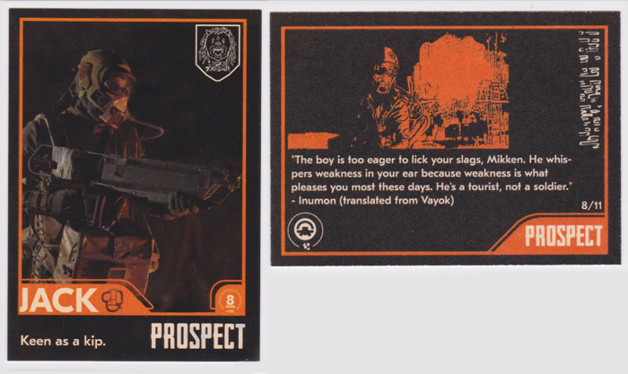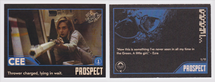 To help promote the film, Ground Control Productions has sent over these cool Prospect-themed "trading cards" which evoke that classic Topps Star Wars set. You can see the covers in the image at the top of the page, and get a closer look at all of them by clicking on the individual images below: