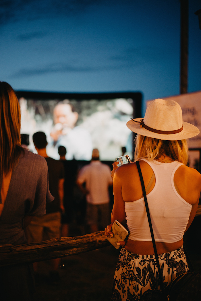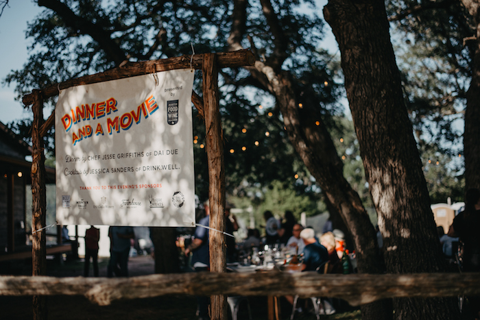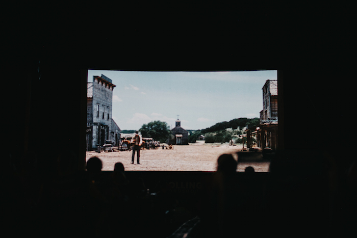 Booze flowed through the dusty Main Street as Don Julio Tequila kept everyone's glasses full and those who preferred a different poison were in and out of the creaky wooden doors of the saloon throughout the evening. If anyone missed out on Dai Due's lavish dinner, they could wrangle their appetites with a visit to any of the three food trucks on the property such as Garbo's Lobster, Buro Cheese Kitchen, or The Peached Tortilla. Once the sun set and the stars deep in the heart of Texas started to shine, the screen lit up with an Alamo Drafthouse signature pre-show consisting of behind-the-scenes footage of the film, music, and interviews. Gathered around in lawn chairs and lounging on blankets, the audience joined Willie Nelson on a journey filled with love, sin, and redemption.