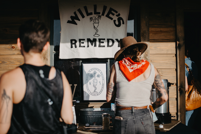 Driving up a winding dirt road, horses grazing as the summer sun sets, an abundance of friendly smiles are there to greet you upon entering Luck, Texas. Nestled in the hill country just outside of Austin, Texas on Willie Nelson's property, Luck is home to seventy-five rescue horses and the set from Red Headed Stranger, a film near and dear to all who worked on it. However, Willie is no stranger to Texans. His friendly demeanor, long braided pigtails, classic country music, and advocacy for marijuana are all staples that make Willie a beloved figure in the Lone Star State.True to his southern hospitality, he invited a large group individuals to his property for a Luck Cinema and Rolling Roadshow event complete with a delicious dinner courtesy of Austin-based restaurant Dai Due and a screening of Red Headed Stranger, followed up by a Q&A with the man, the myth, and the legend himself.Upon entering the property, guests were allowed to freely roam around the fictional town of Driscoll, Montana, a film set specifically built for the 1986 movie starring Willie Nelson as a preacher who takes revenge upon his wife (Morgan Fairchild) and the lover she runs off with. Like any small Western towns, you have your staples: a quant church, jail, saloon, bank, and general store. The jail housed Willie's signature brand Willie's Reserve which consists of a line of tea, coffee, and CBD products available for purchase. In another building was a collection of movie memorabilia courtesy of The Wittliff Collections, which showcased movie props and behind-the-scenes photos from the film.(All photos are courtesy of Brooke Hamilton.)