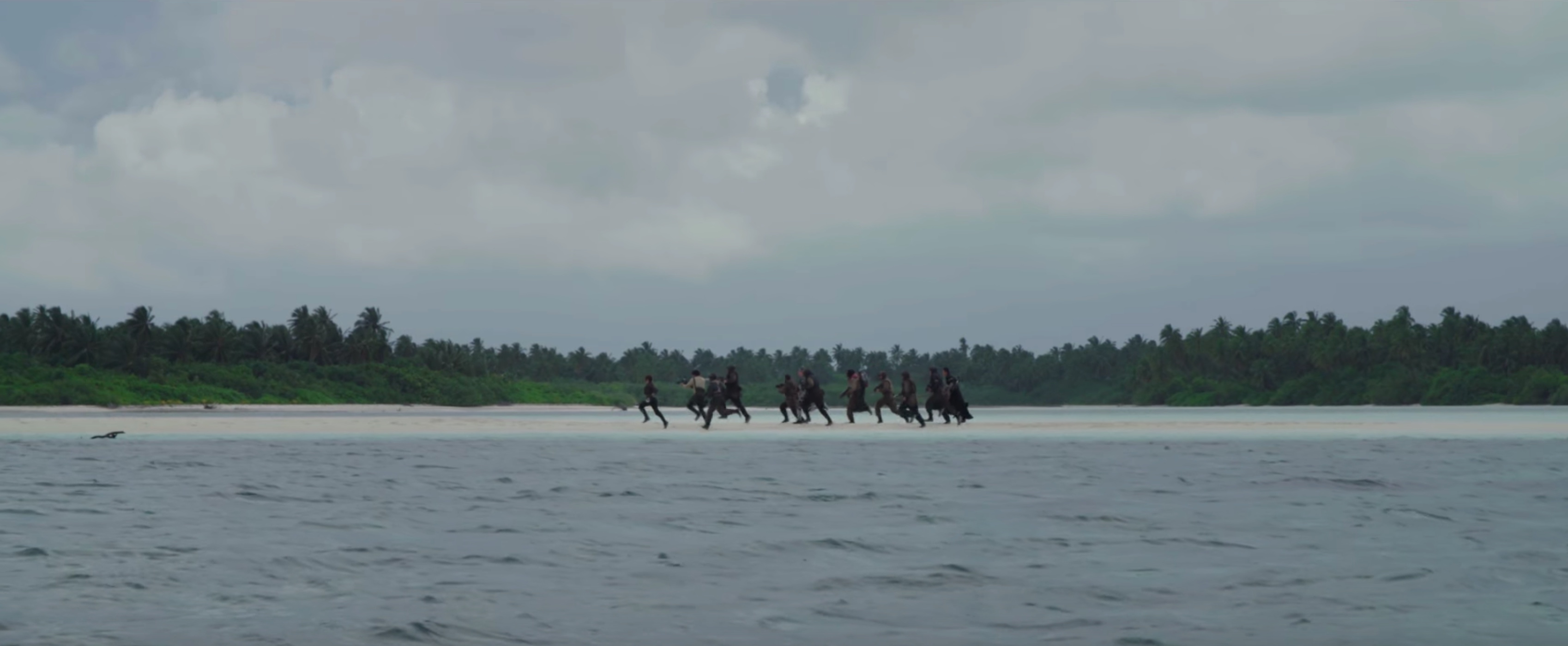 During his Star Wars Celebration Europe presentation, Edwards hinted that the shot might not actually be in the movie, saying, "A storm actually started coming in when we filmed this bit, and the problem is, if you use it, people will think its like bad VFX because it looks like we cut things out and done things to it but that's exactly how it looked on the day."