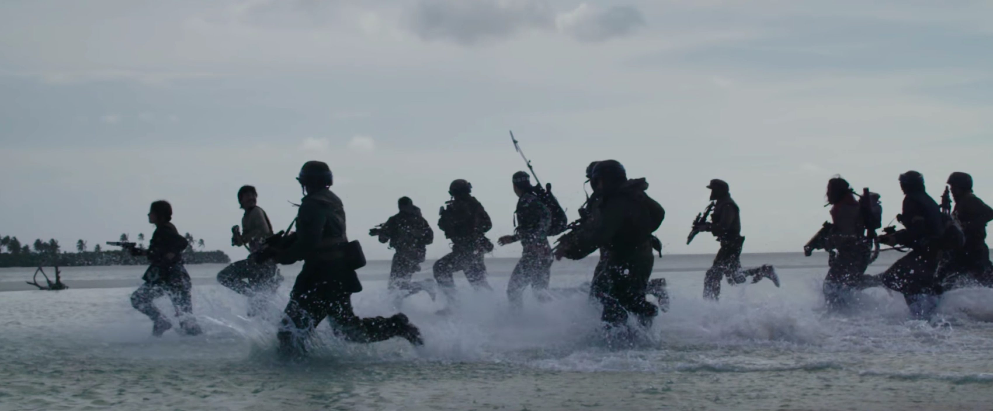 One of the most iconic pieces of imagery from the Rogue One marketing campaign features the squad of Stormtroopers patrolling through the knee-deep water on Scarif. These images were first debuted at Star Wars Celebration Europe (at the conclusion of the reshoots) and became the basis of the print and billboard marketing campaign even though the shots are no longer in the movie.