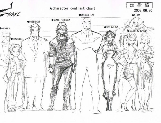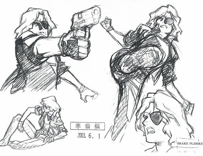 Below, not only can you see some gameplay from the cancelled game Snake Plissken's First Escape, you'll see concept art from an anime style TV show called Snake.