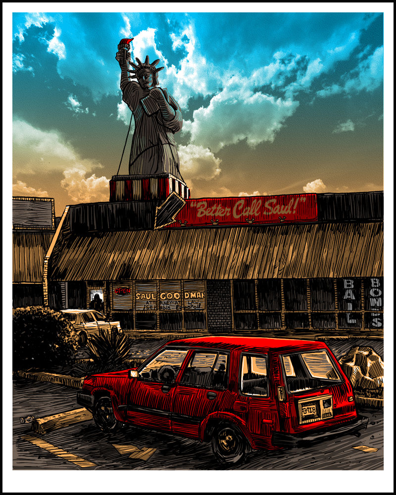 We'll do this in date order. Tonight opens Tim Doyle's UnReal Estate III, from 6-10 p.m.  at Spoke Art, 816 Sutter St., San Francisco, CA. It'll remain on display through February 22. Get more info at www.spoke-art.com. We've already covered a bunch of art in the show, but here are a few more, both from Breaking Bad.