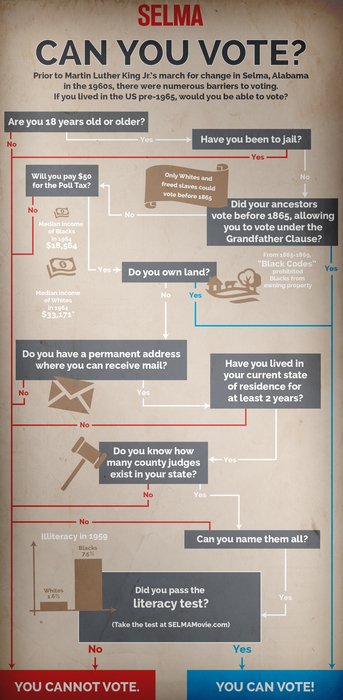 So it's a good time to be reminded that some voting rights were hard-won and should be used, no matter how cynical one may be about the process. (I speak as someone who is very cynical about the process.) In Selma, David Oyelowo plays Dr. Martin Luther King, Jr. The film follows the assassinated civil rights leader's organization of three marches from Selma to Montgomery, Alabama, meant to protest unjust voting restrictions. Like other Civil Rights Movement actions, these marches faced violent opposition, but also raised awareness of the inequality suffered by African-Americans. Watch the first Selma trailer below.