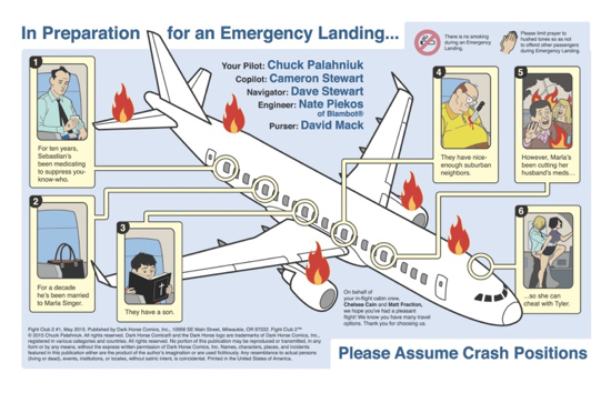 19 years after Chuck Palahniuk first published Fight Club, he's back with a comic book follow-up. Dark Horse Comics has unveiled a look at a variant cover of the first issue, drawn by Chip Zdarsky, as well as some preview pages. Check some of 'em out below and head to THR for even more.