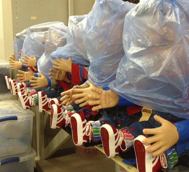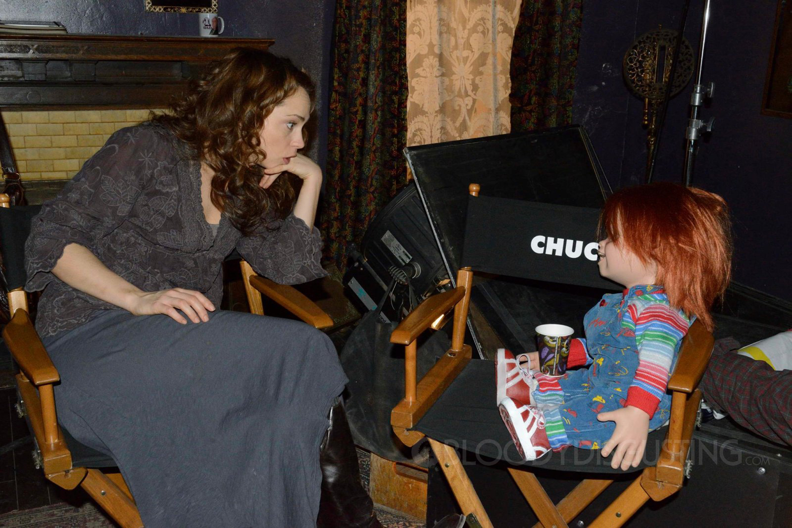 The original Child's Play struck fear into the hearts of many, but the Good Guys doll looks downright harmless in this new batch of set photos from Curse of Chucky. My favorite is the one of him chatting amiably over coffee with his co-star Fiona Dourif.