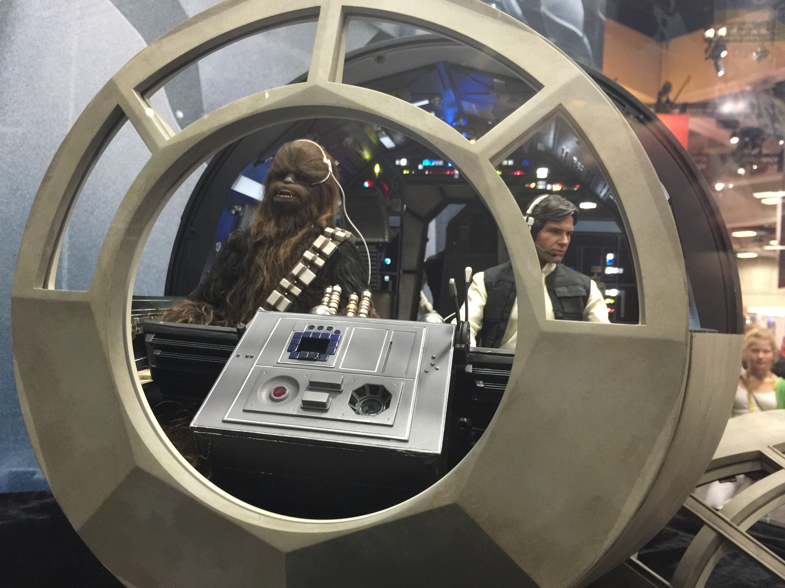 Okay, so not quite as big as a sixth scale Tie Figher, but still bigger than the Delorean is what comes next, a sixth scale Millennium Falcon cockpit. I'm sure the whole Millennium Falcon would have been too huge even for the biggest Star Wars collector, but Hot Toys figured out how to give us as big piece of the pie. This thing looks pretty damn cool. There are a ton of light up buttons, with the cockpit faithfully recreated. Even the entrance to the cockpit on the backside is a cool display area. And again, this thing is huge.
