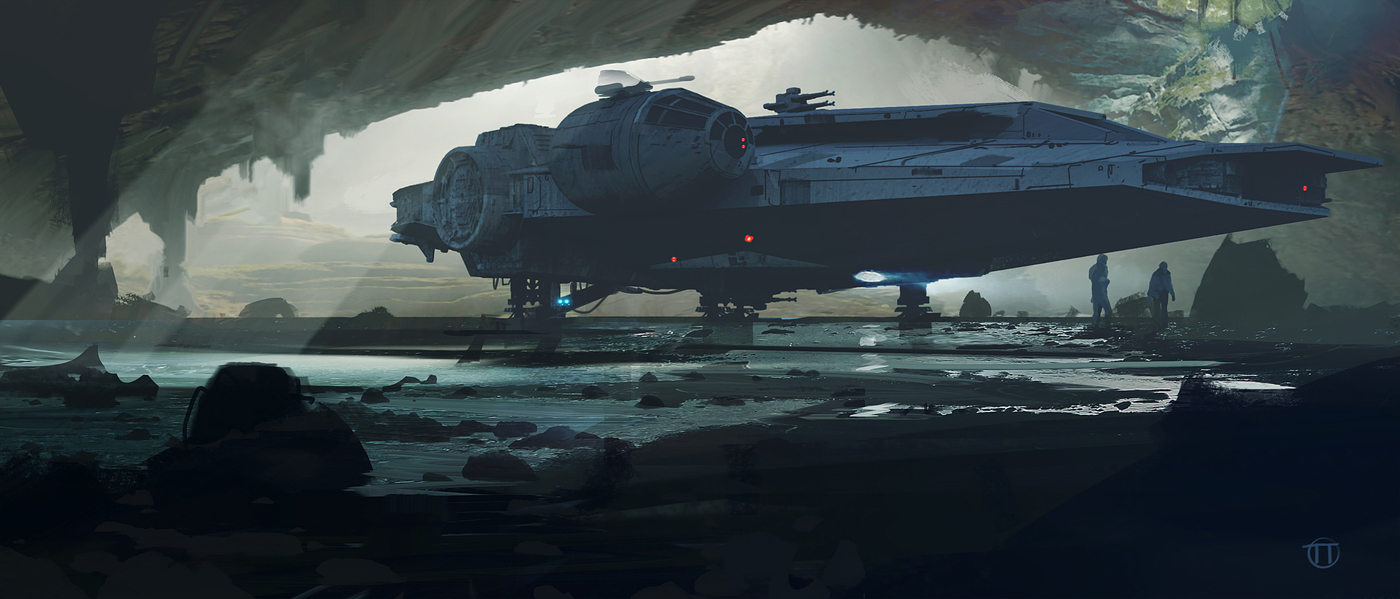 40. When I was growing up, there was a stack of Star Wars Marvel comics in my grandparents house in Michigan that, I assume, belonged to my brother. It remained there, in exactly the same spot, for twenty-five years. I really wanted the shoot-out on the landing pad at Kessel to evoke the feeling of those wonderful Marvel comic covers from the 80s, Han and Lando, their blasters blazing. I think RH achieved that and then some. Seeing those three guys beneath the Falcon is the absolute realization of that particular childhood fantasies. Thank you RH and GL
