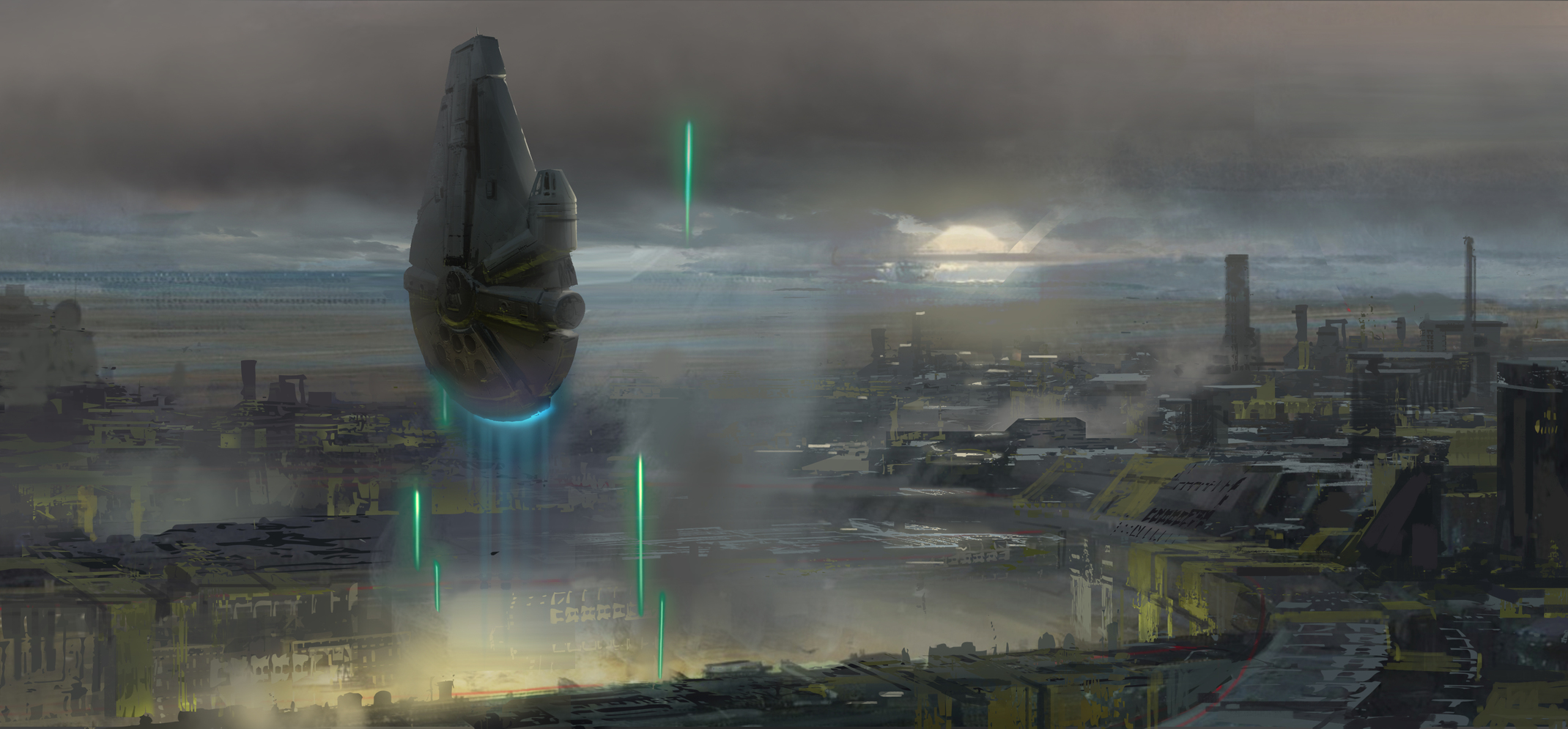 9. Coronet Spaceport was a name we found on Wookieepedia while looking for spaceports on Corellia. We wanted the sequence to feel like the Ellis Island sequence in Godfather Part 2, to give a sense of how small Han and Qi'ra are in the scheme of things and the cruel, impersonal machine that is the Empire.