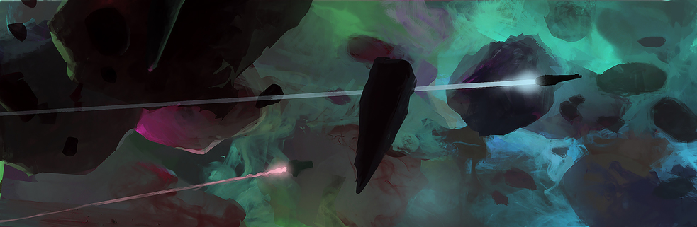 32. The Maelstrom. This is another idea that stuck from the first draft. Trying to solve the problem of how to make the Kessel Run visually exciting, inventive and, at least somewhat logical, weighed heavily on all of us throughout the process. It was something we discussed endlessly and knew would never satisfy everyone, and specifically never satisfy Neil Degrasse Tyson. We wanted a Jules Verne flavor and we loved the idea of a storm in space, what that might look like. The Hubble image of The Pillars of Creation was a huge influence on this concept. ILM did tests in which they blow up canisters of different colored powder and photographed the explosion in slo-mo. Those test were fun to watch.