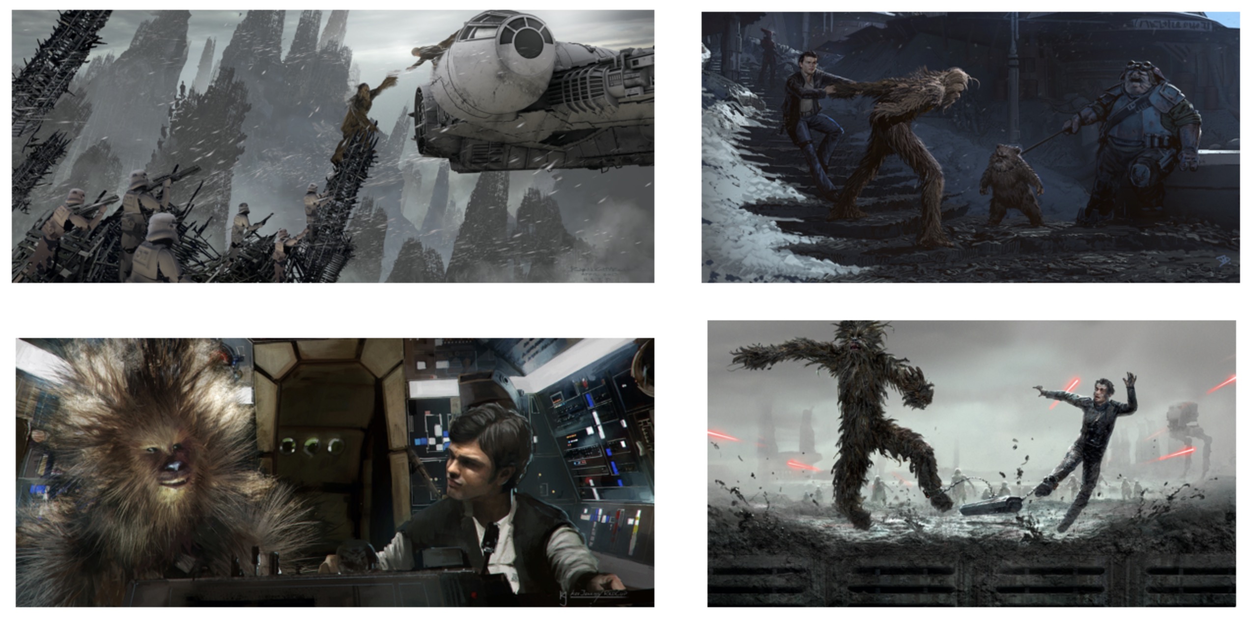 In addition to all these Solo tidbits, some concept art is now available for your viewing pleasure. Most of the art here is of landscapes (or I guess starscapes is more accurate), but one interesting image reveals that we came very close to seeing an Ewok in Solo.
