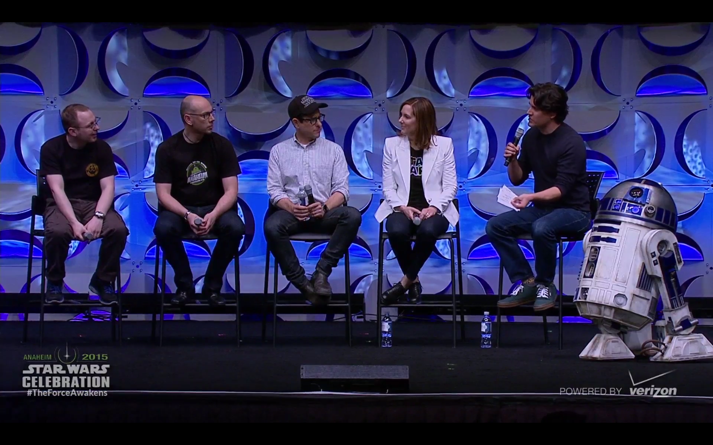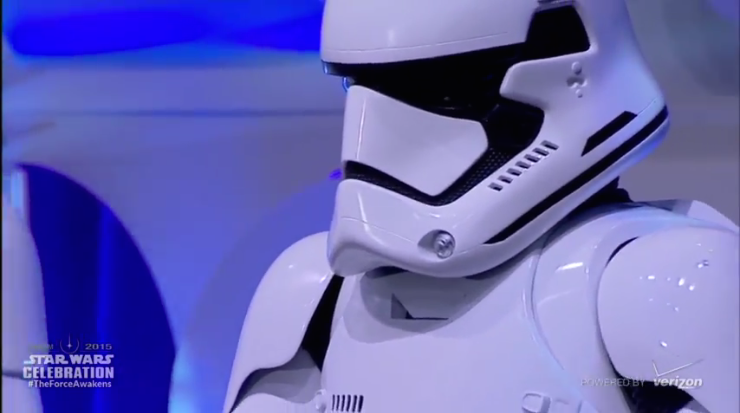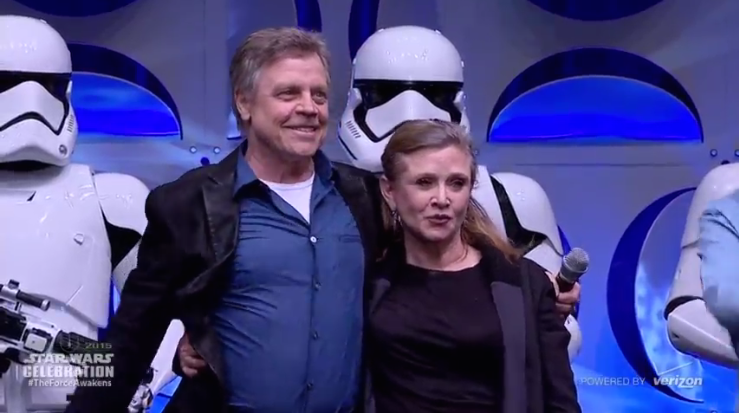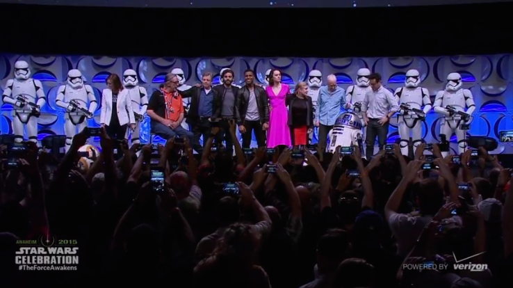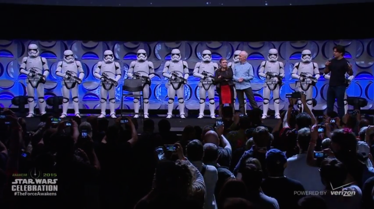 And finally, here are a few snaps from the event itself. In addition to the new cast members, classic stars Carrie Fisher, Mark Hamill, Peter Mayhew, and Anthony Daniels showed up to wave to the Celebration crowd. Also of note are the close looks at the new Stormtroopers and the BB-8.