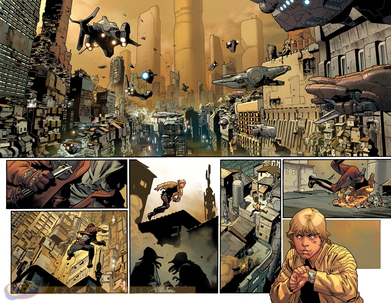 Take a peek inside Star Wars #9, written by Jason Aaron with art by Stuart Immonen. According to the very excitable synopsis, "Luke's lightsaber has been stolen and he must retrieve it! Meanwhile, the Imperials are closing in on Han and Leia... set upon them by a mysterious woman from Han's past!"