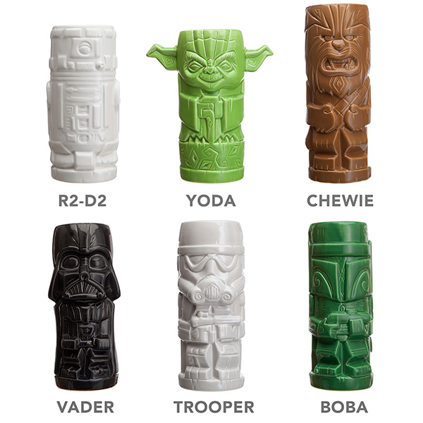 And what better tiki mug to drink from than one that looks like a character from the Star Wars? Choose to drink with Boba Fett, Chewbacca, Darth Vader, R2-D2, a Stormtrooper, or Yoda. Each holds about 14 oz. and has a contrasting interior, which will make you happy when you get to the bottom of the drink and have to ask, "But why is the rum gone?" Or at least, it'll entertain you a little. We think the lack of rum has something to do with moisture farming, but you didn't hear it from us.