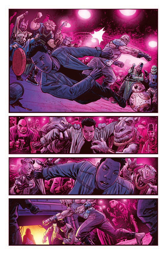Jedi-Bibliothek has a preview of some pages of the upcoming Star Wars comic Allegiance, a four-part miniseries that is set before the events of The Rise of Skywalker. Head over there to see the rest of the pages, but it looks like Finn needs to work on his reflexes a bit if he's going to avoid getting knocked around in a street fight. Star Wars: Allegiance hits shelves on October 9, 2019.
