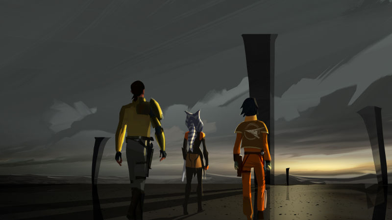 If you want something to occupy your time until the new season premieres, io9 has collected a bunch of concept art from Star Wars Rebels season 2, and it's good stuff. Although the CG animation on Rebels certainly gets the job done, I would love to see a full Star Wars animated series done in the style seen in this concept art. I've collected a few of my favorite pieces here (including a few from the season 2 finale), but you can follow the link above to check out more.