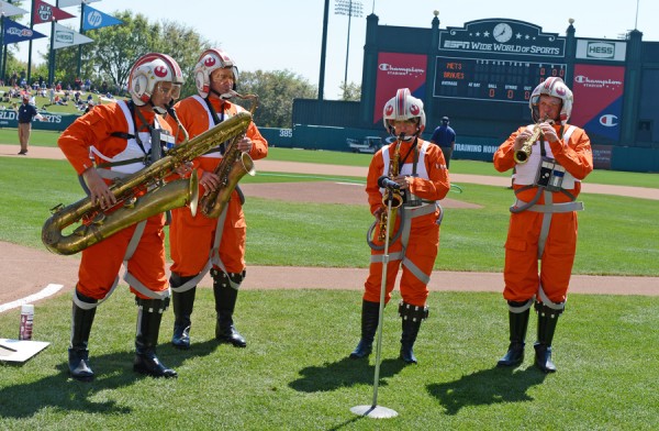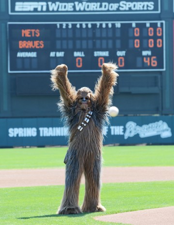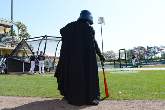 Jedi may be more comfortable swinging lightsabers than baseball bats, but Mickey-as-Obi-Wan seems to hold his own just fine against the Atlanta Braves in spring training. Check out the photographic evidence after the jump. Also: