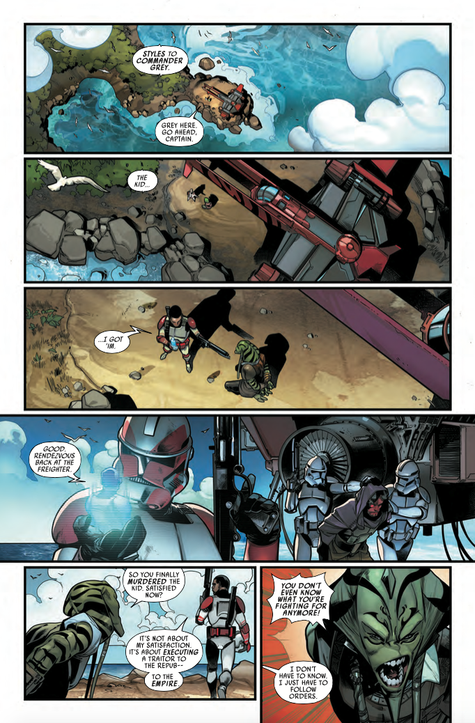 Check out a preview of Kanan: The Last Padawan #5, from writer Greg Weisman and artist Pepe Larraz. The final chapter of Kanan's secret origin sees the Star Wars Rebels character — then known as Caleb Dume — trapped in an Imperial cruiser at the mercy of Clone Troopers Grey and Styles.