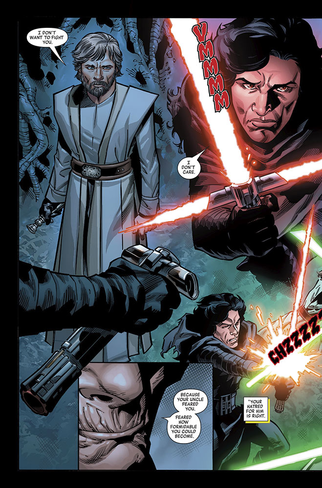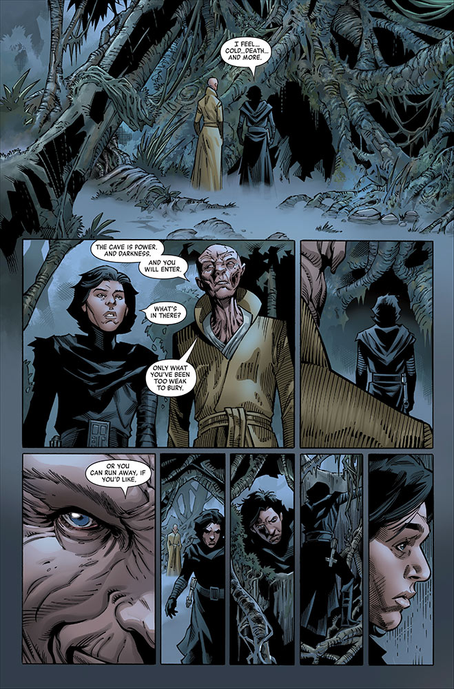 StarWars.com shared an early preview of Star Wars: Age of Resistance – Supreme Leader Snoke #1, which sees the evil First Order leader taking his protege to Dagobah, where Kylo Ren encounters a vision of Luke Skywalker. The issue arrives on shelves September 11, 2019.