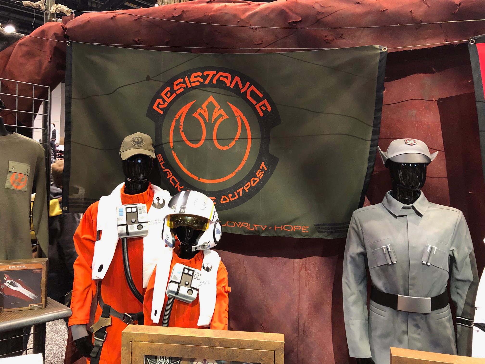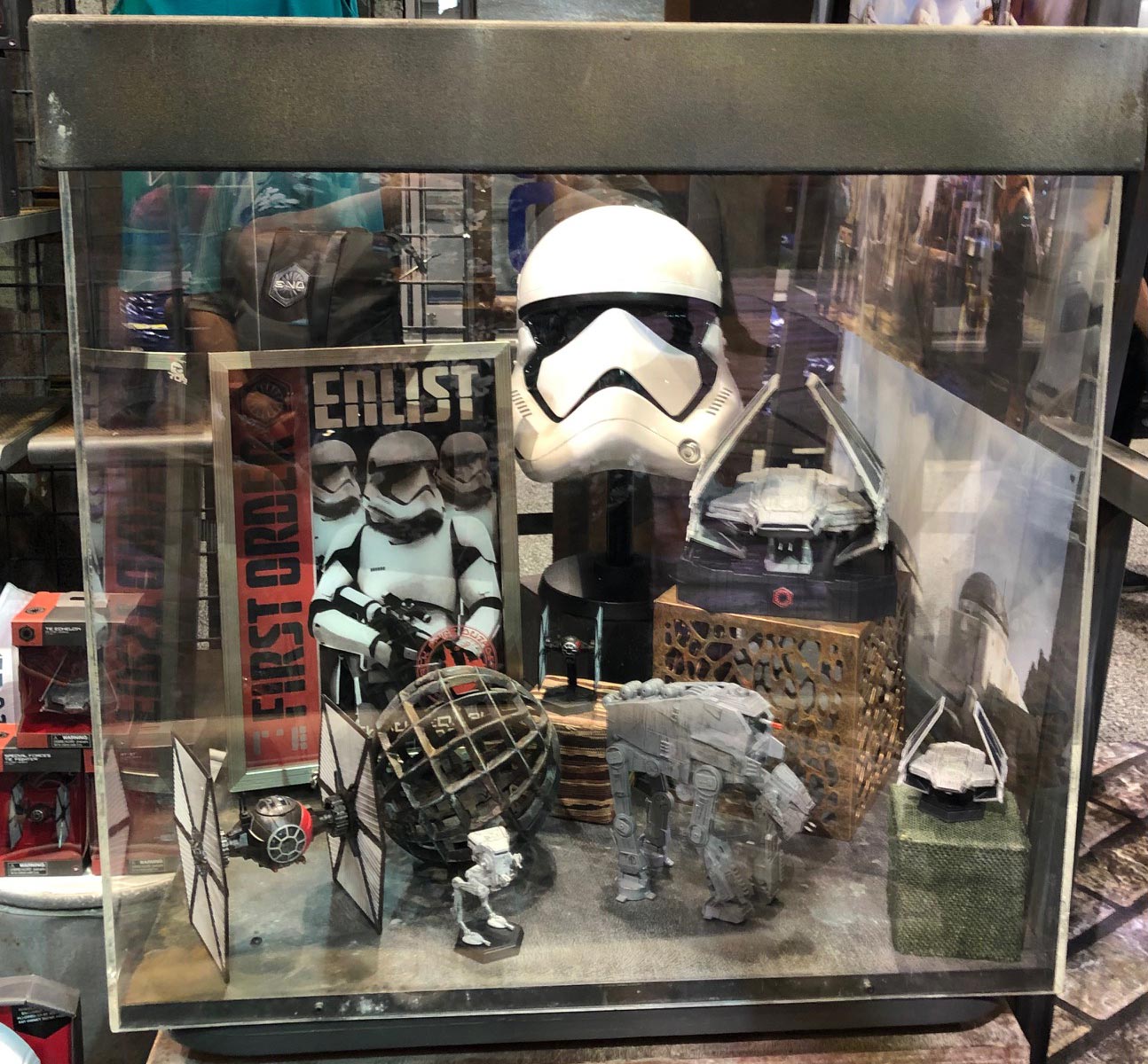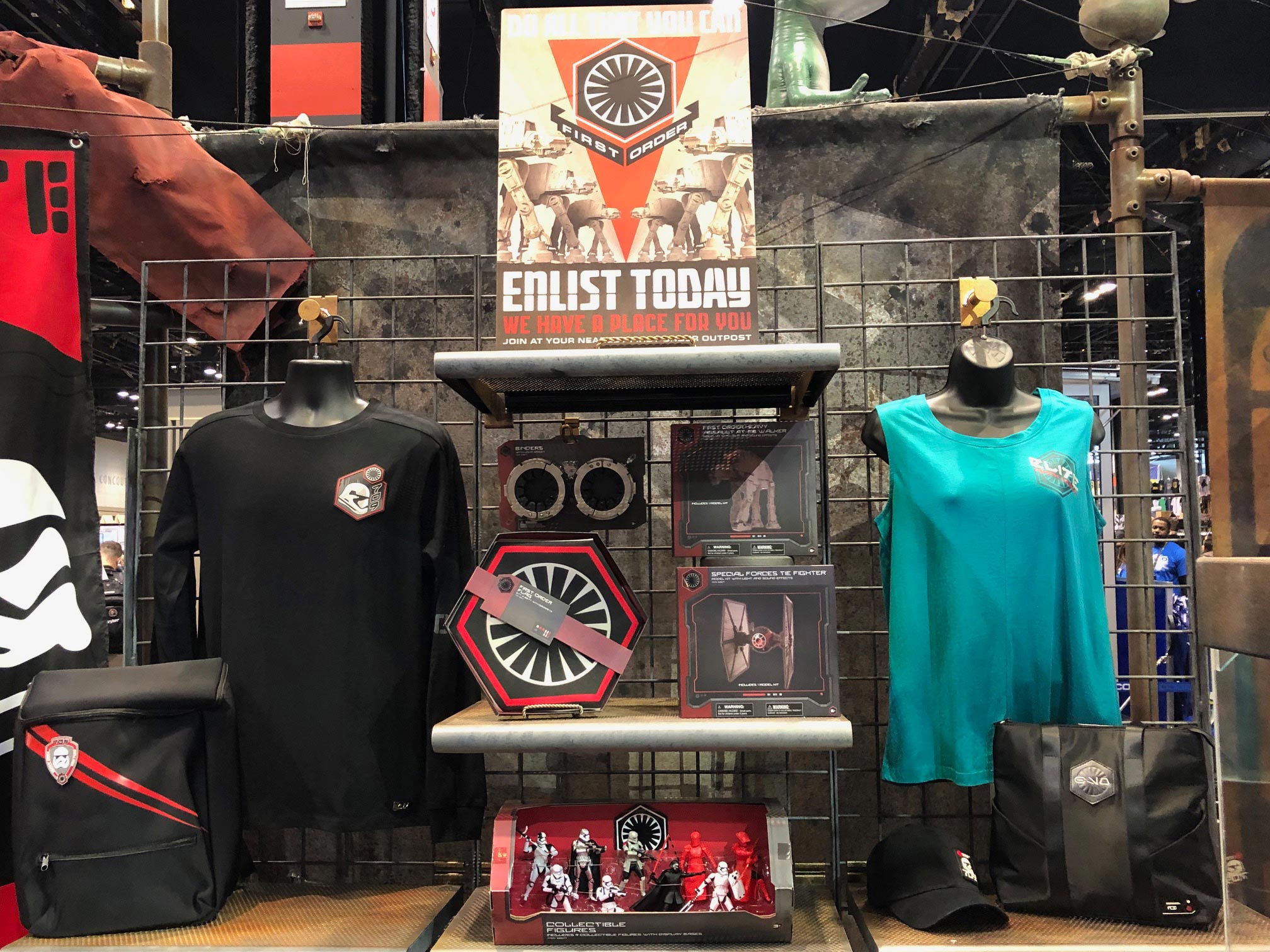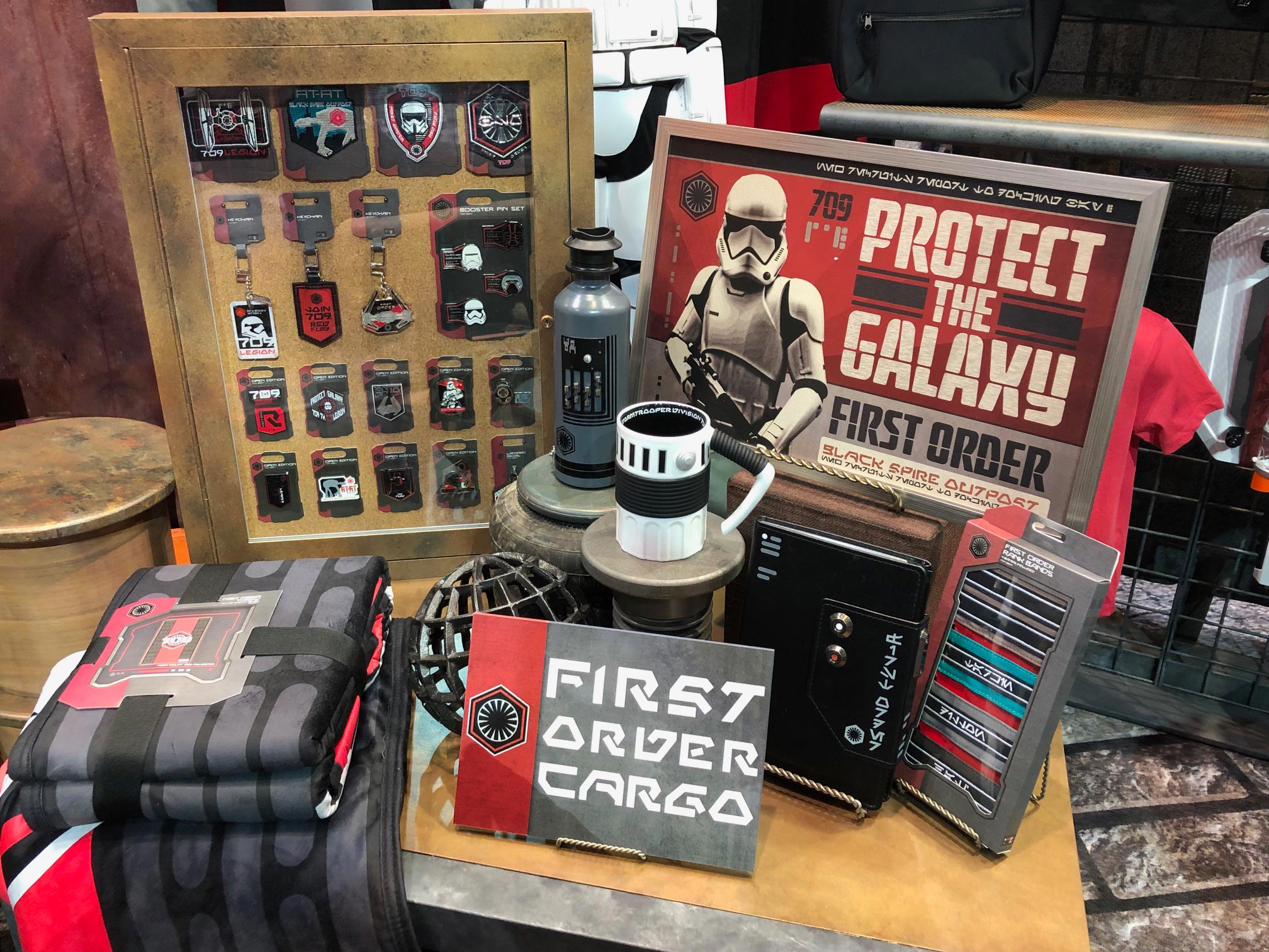 The First Order Cargo shop is full of some very menacing merchandise. There are signs that look like propaganda, shirts that promote the idea that they're protecting the galaxy. And even a flag with the First Order emblem on it. Be careful waving that around your house, because you're just asking to be taken out by a sect of the Resistance.