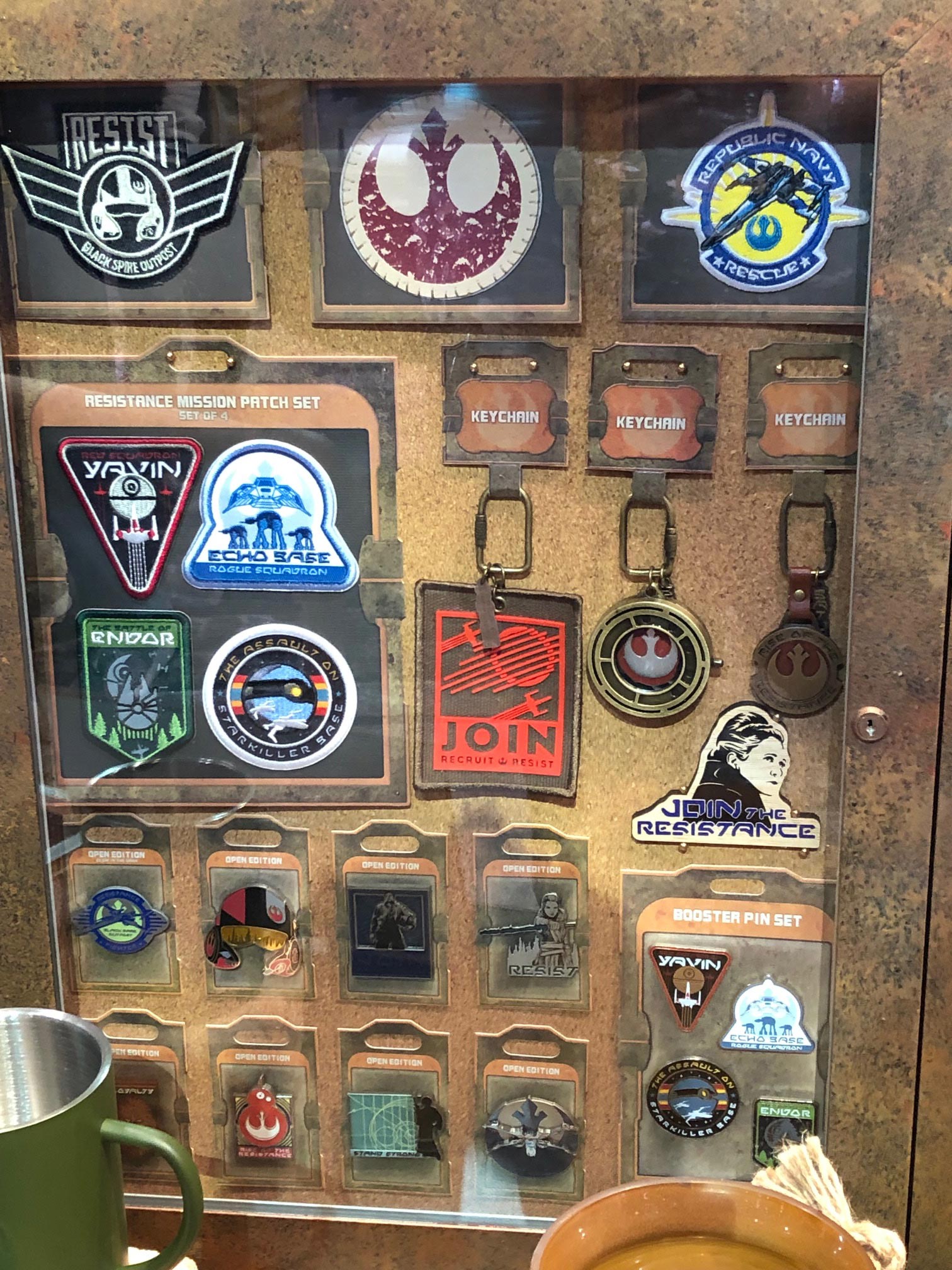 Collectible pins are a trademark piece of memorabilia in Disney theme parks, so of course Star Wars: Galaxy's Edge will have their own pins. These are made to represent each side of the war with vehicles, logos, propaganda style graphics, and other familiar imagery for each side. Along with the pins, there are also several patches that you can sew onto jackets, backpacks or wherever, not to mention keychains too, including one on the Resistance side that looks like Rose's secret ring from The Last Jedi.