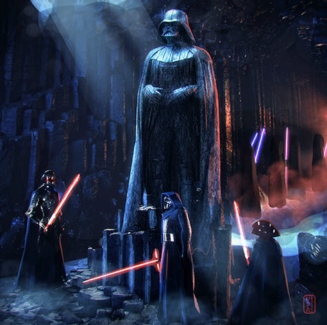 The other piece features Kylo Ren and some of the other Knights of Ren around a Darth Vader statue. We don't know if this is inspired by a scene we'll see in the movie, but we have been told that this organization, which gave Kylo his name, worships Darth Vader and what he stood for. And that seems to be Kylo Ren's driving force, judging by the dialogue we've heard from him in the final trailer as well as the international trailer, the first TV spot and the latest TV spot.