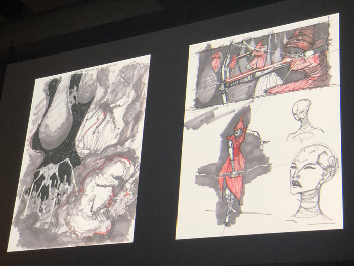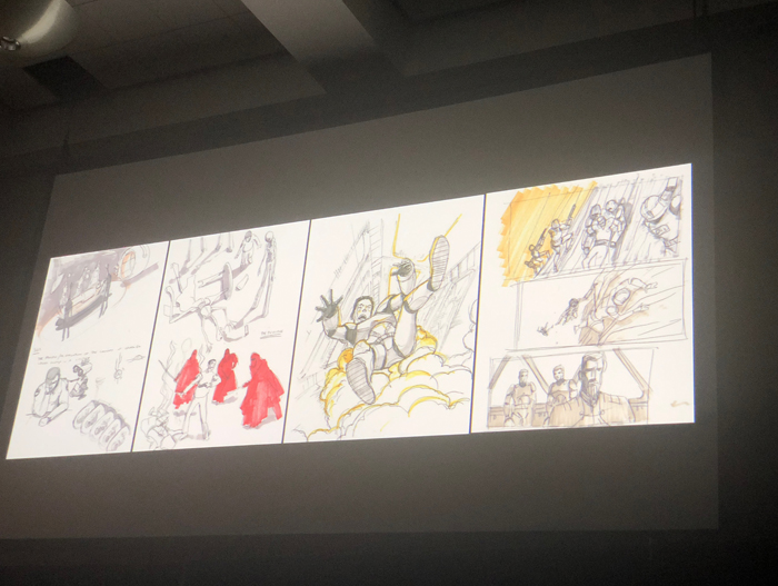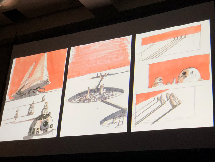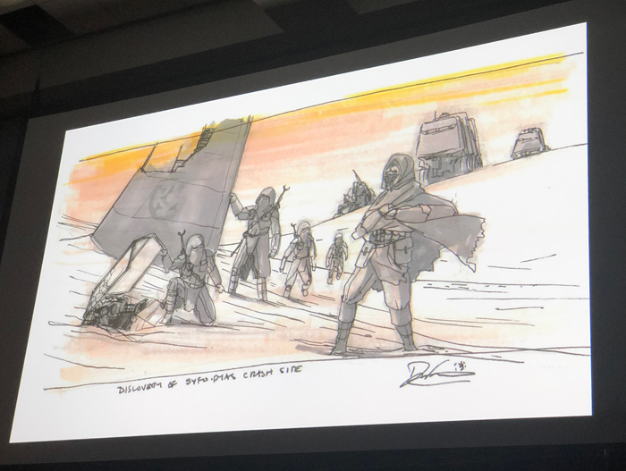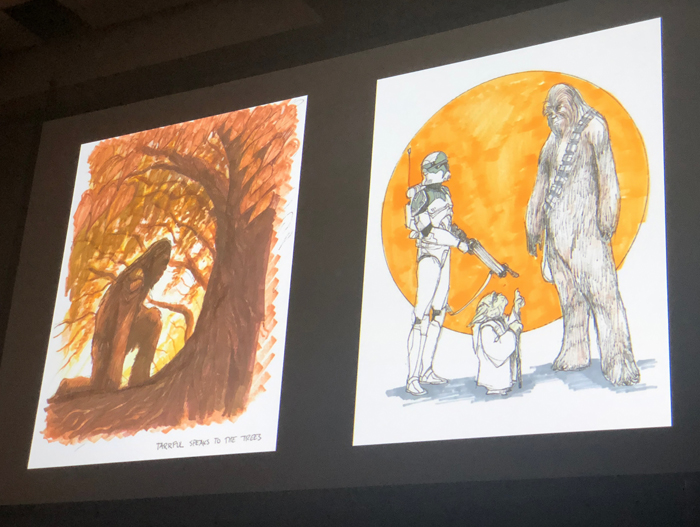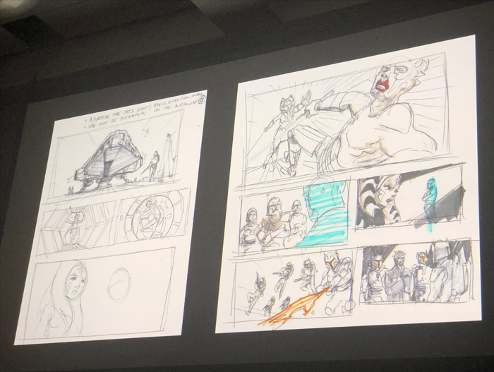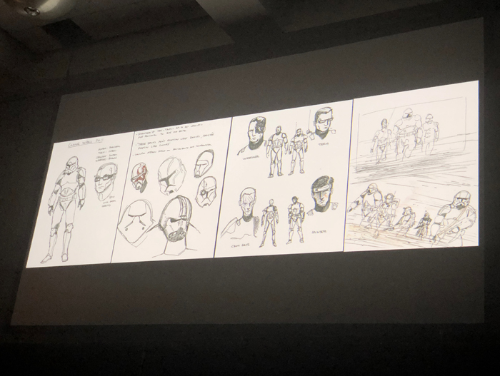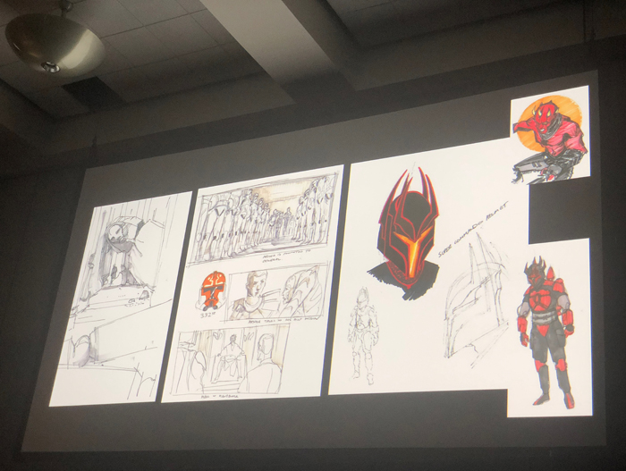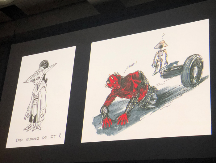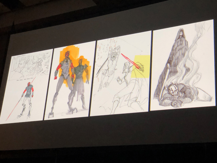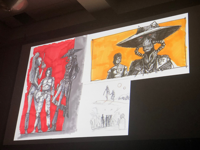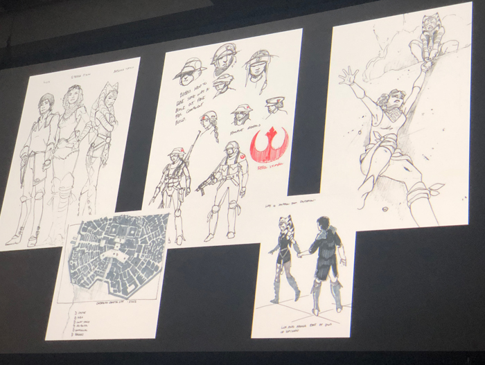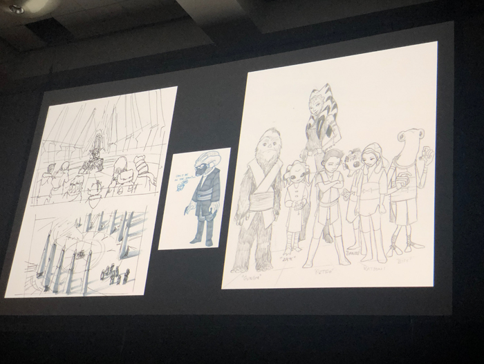 Probably most interesting was the bevy of slides featuring never-before-seen concept artwork and Filoni's personal sketches (some of them weren't even in the Lucasfilm archives but rescued from boxes in Filoni's office space) showing us how the series evolved and some alternate designs and paths not explored.