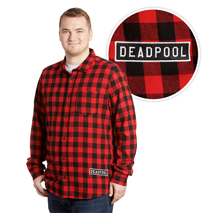 If poor fashion choices and superheroes are your thing, this weird Deadpool flannel should do the trick.