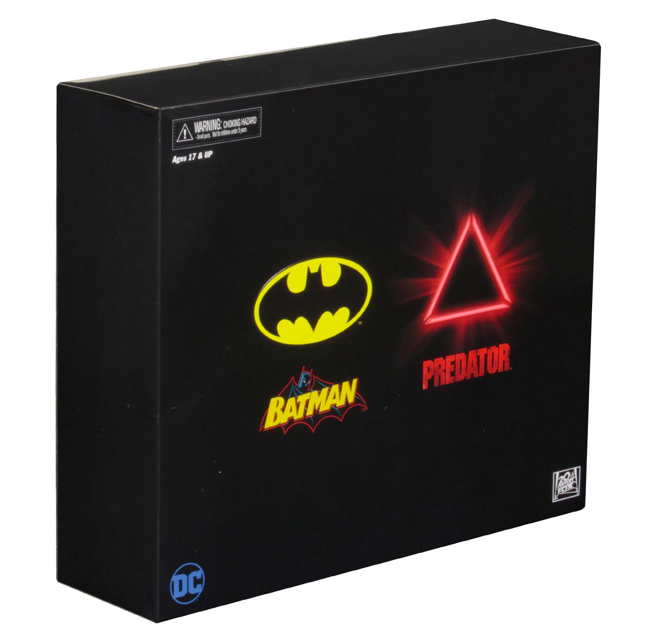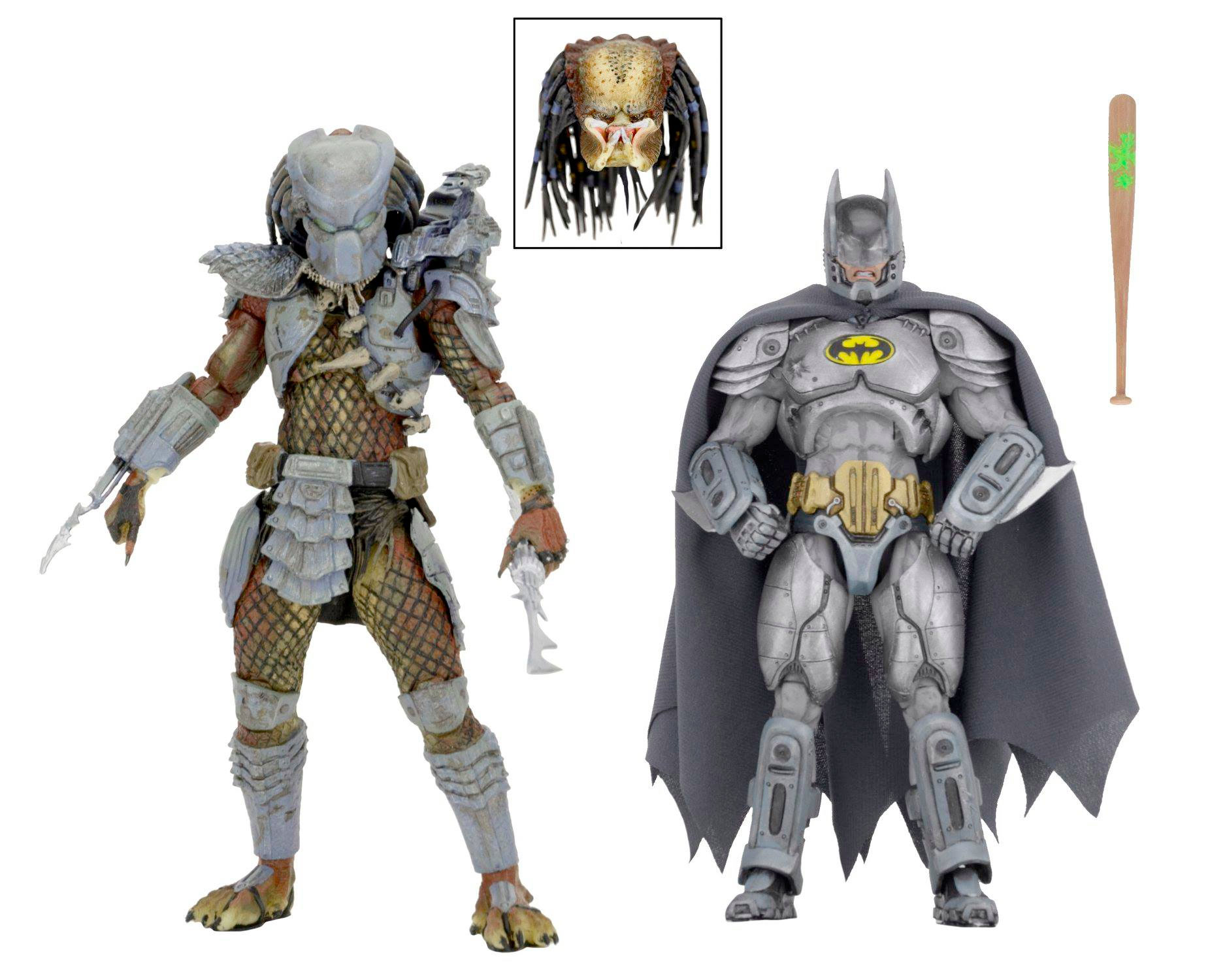 The set includes two brand new, 7" scale comic book based figures, both with over 30 points of articulation. Batman features a fabric cape and comes with a gun and bat accessory. The Predator features 2 heads, removable backpack, retractable wrist blades and spear accessory."