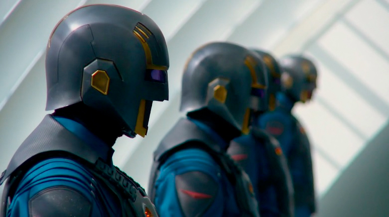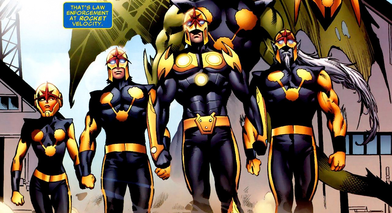 In fact, this detail makes us think that he's playing someone in the Nova Corps. Here's what they look like in the comic books on the left, and what they looked like in the first movie on the right: