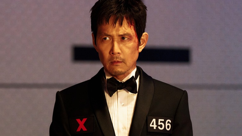 • Benoit Blanc, with half his face in shadow and half in sunlight, in Wake Up Dead Man
