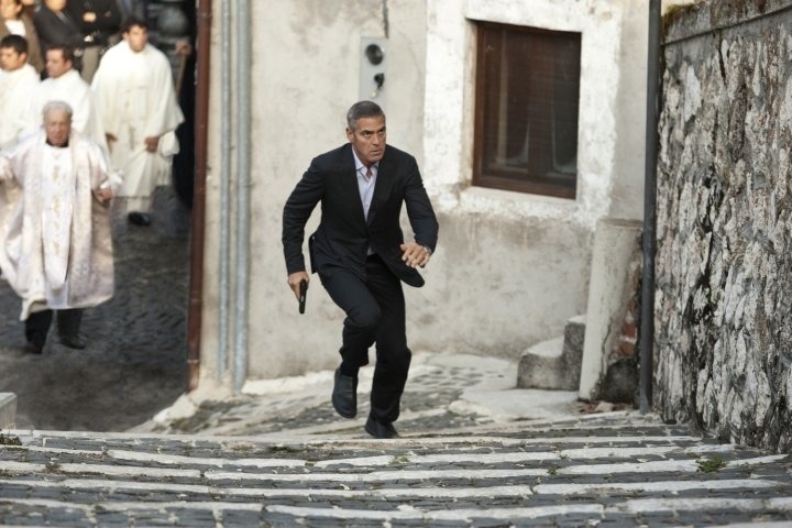 • Jud and Blanc in the church looking over at someone in Wake Up Dead Man