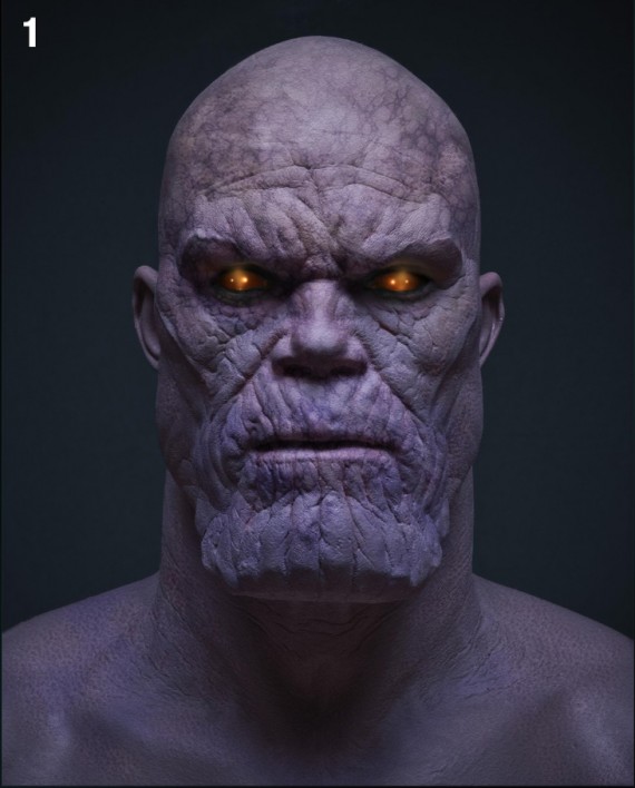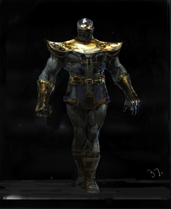 Here is concept art of Thanos done for The Avengers. That means it is a couple years old — we ran much of this in the fall of 2012. But if you need more of an idea about the character, this is a good start. That maquette for the prosthetic work sure could be seen to look like Brolin. (Though it could also be considered to be based on three or four other guys.)