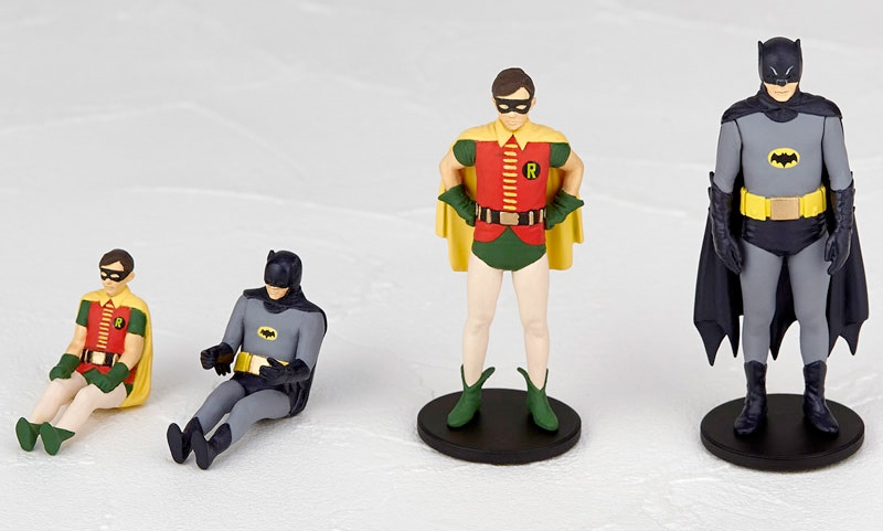 The classic Batmobile from the 1966 Batman television series gets a new 1/35 scale collectible that comes mini versions of Batman and Robin standing a 6mm tall, as well as versions of the figures that sit inside the vehicle itself. The doors, hood and trunk open and of course the wheels turn too. There's no pre-order available yet, but the vehicle will cost about $80 from Kaiyodo and will be released in December.