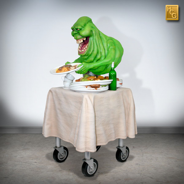 There have been a bunch of new high-quality Ghostbsuters statues and figures surfacing lately, and Hollywood Collectibles has a gorgeous addition to the line-up. A new 1/4 scale statue of the ugly little spud known as Slimer is available for pre-order right now, depicting the spectre as he first appears in the original movie, eating a bunch of food on a hotel room service cart.