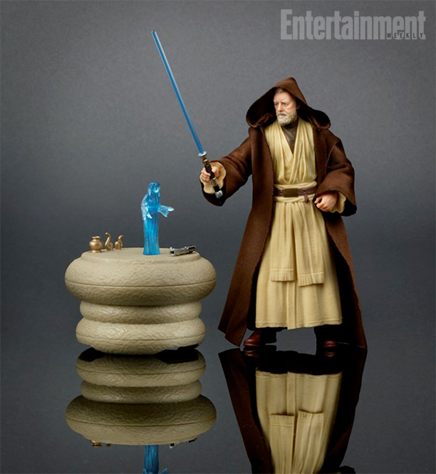 Second, San Diego Comic-Con will have an exclusive Obi-Wan Kenobi figure at the Hasbro Toy Shop with Anakin Skywalker's lightsaber handle, his own lightsaber, mini Princess Leia hologram and a table for it to stand on. The figure will be sold for $44.99 at the Hasbro Toy Shop booth starting on July 21st.