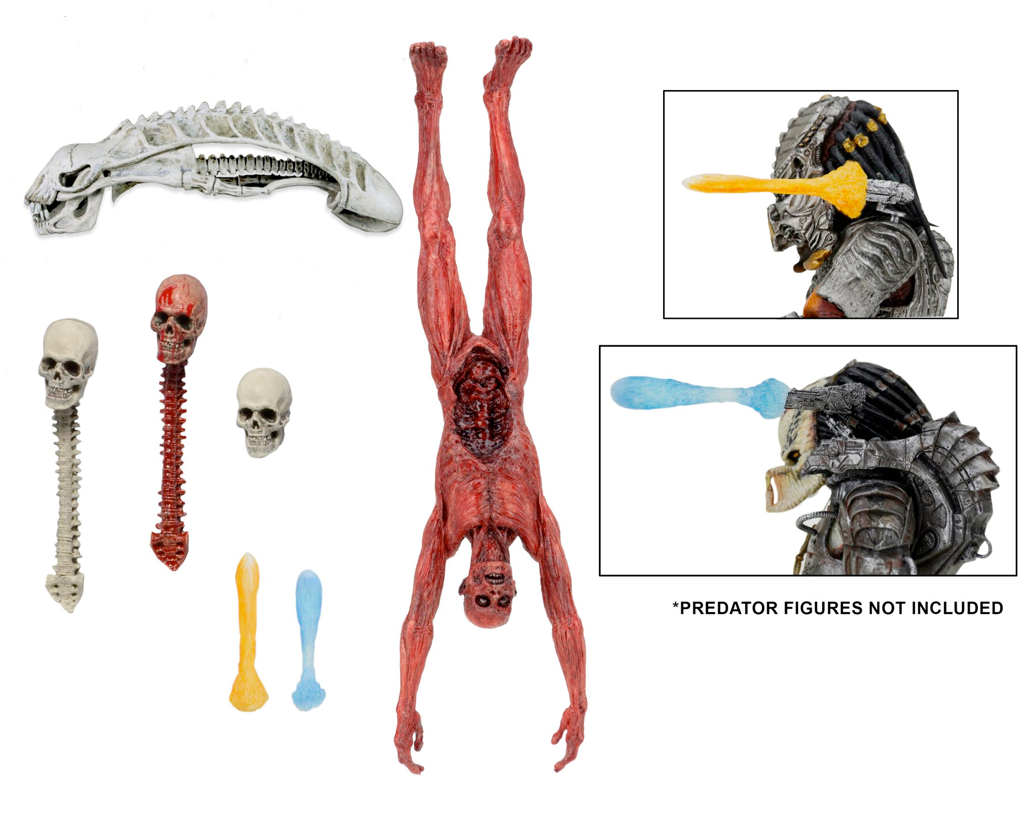 NECA is bringing some new Predator goods to the table at San Diego Comic-Con next week. The good news is these items will be present at the show, but they're not exclusives. The above photos are previews of the new Stalker Predator which glows in the dark and a whole accessory pack featuring ripped skulls on spines, a couple different blast effects and a skinned body. There's even a xenomorph skull as well. Pre-orders for the accessory pack are starting soon, so stay tuned to the NECA Twitter feed for more.
