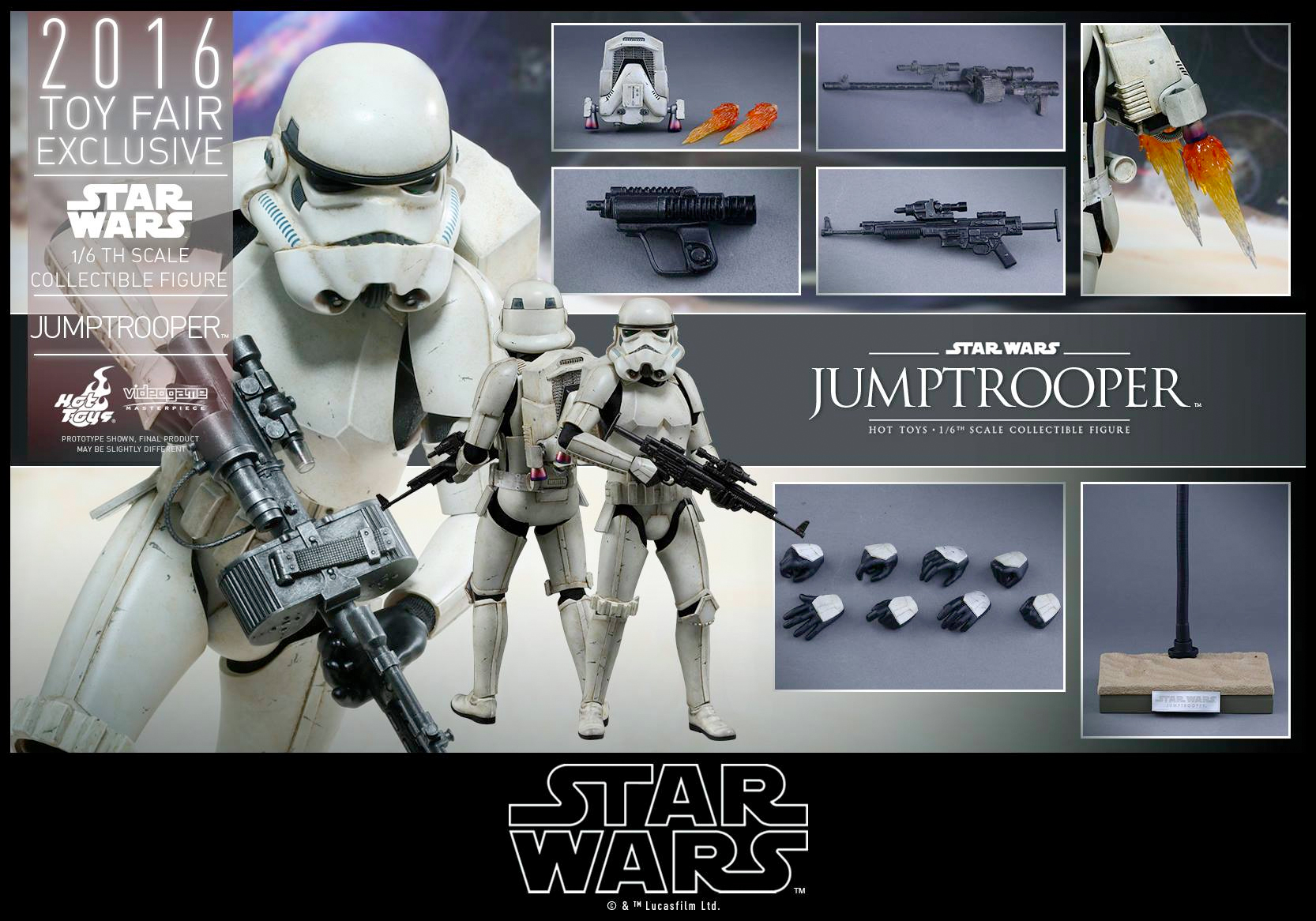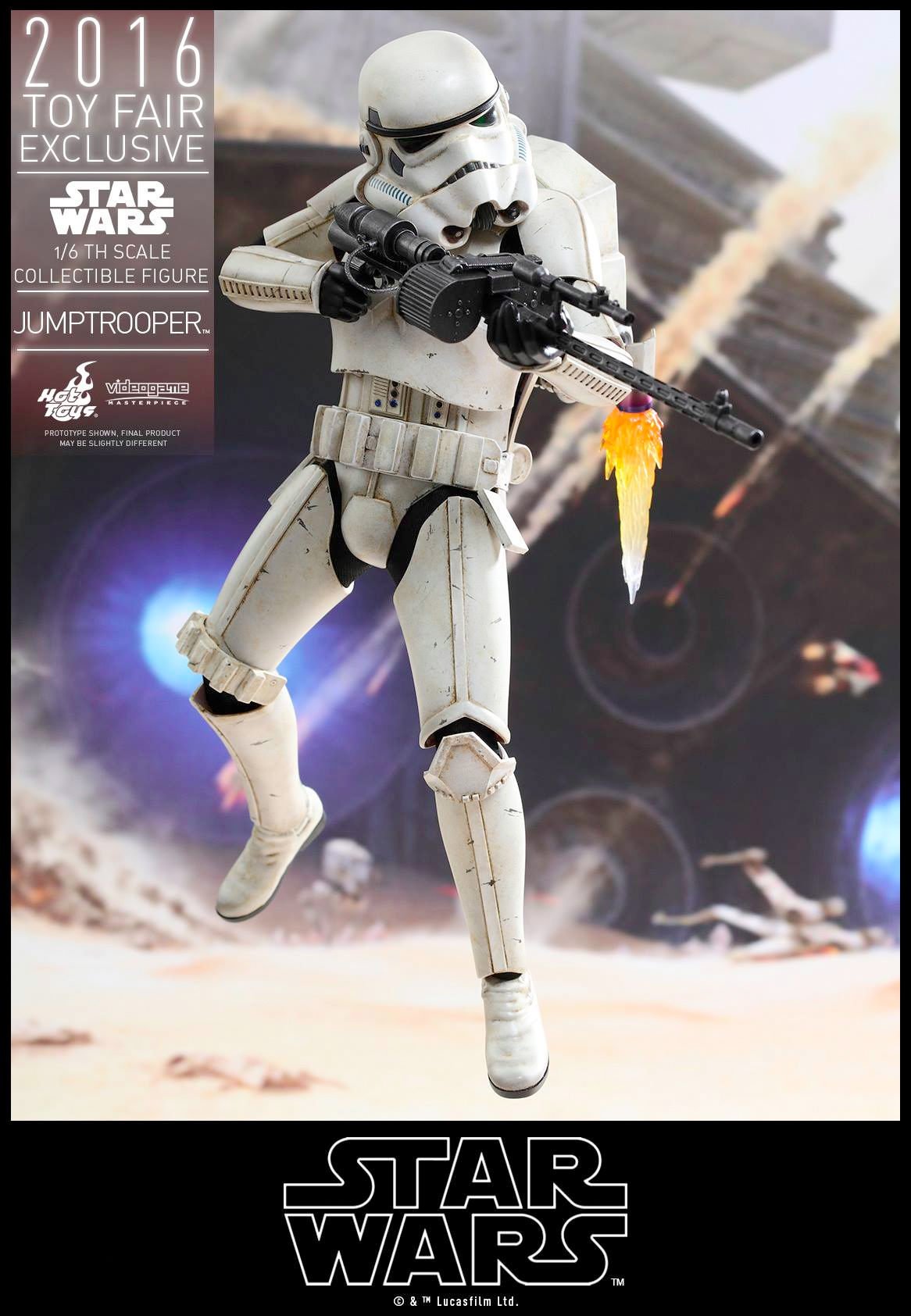 If you've been playing the Electronic Arts video game Star Wars: Battlefront, then you're very familiar with the Jumptrooper. Now the soldier from the Galactic Empire is getting its own sixth scale figure from Hot Toys that is one of their Toy Fair exclusives.